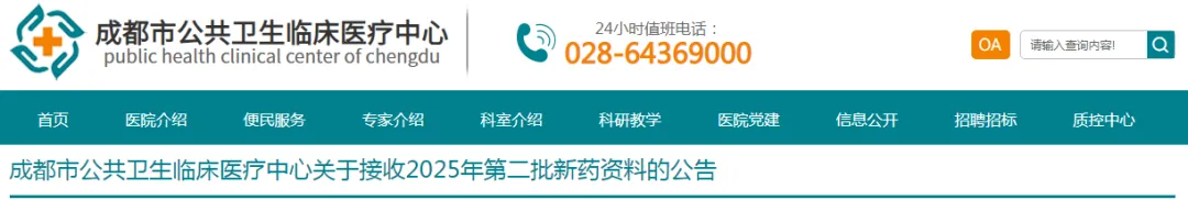 来源:成都市公共卫生临床医疗中心,米内网整理