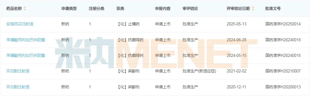 来源:米内网中国申报进度(MED)数据库