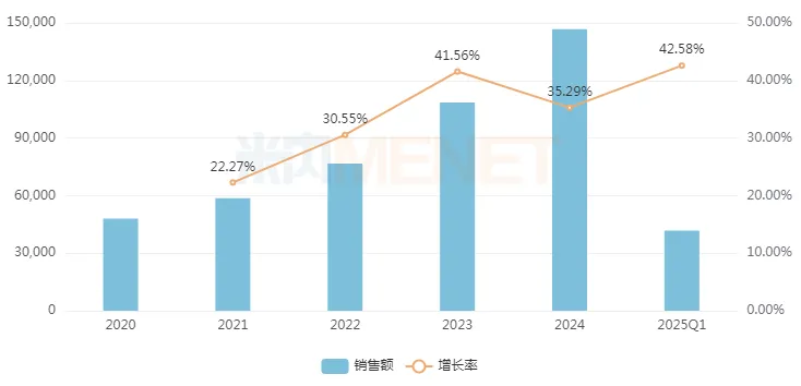 特瑞普利单抗注射液为君实生物的独家1类新药,是国内首个获批上市的国产PD-1单抗。米内网数据显示,该药自2020年经谈判进入医保后市场实现快速放量,2021-2025Q1在中国公立医疗机构终端销售额增速均保持两位数的同比增速,2023年首度突破10亿元大关,2024年拿下创新高的超14亿元。据悉,特瑞普利单抗在国内获批适应症多达十余项,包括肺癌、食管癌、肾癌、黑色素瘤等;同时已在海外40多个国家获批上市,遍及欧美、中东、北非、东南亚等地区。