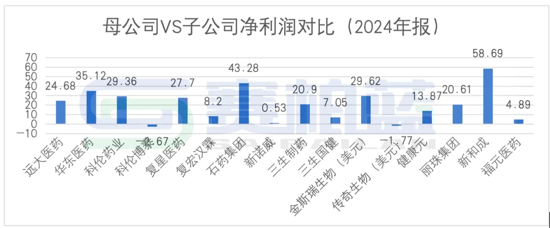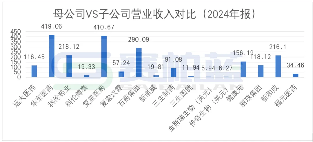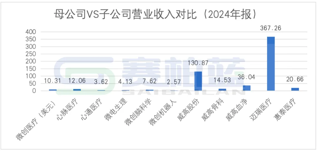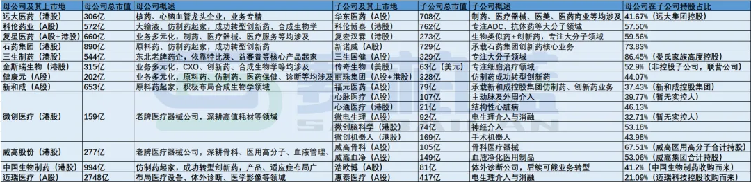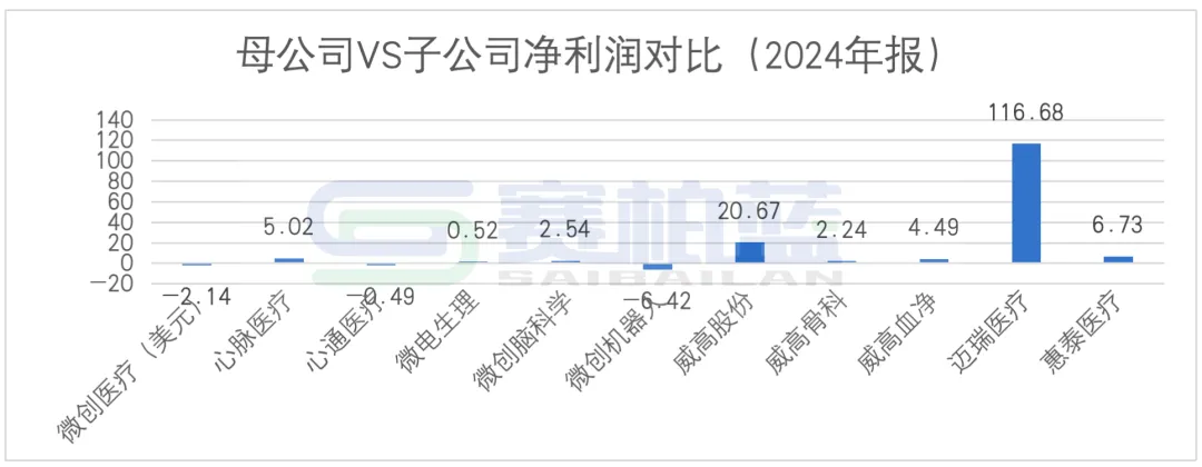 尽管从市值来看,不少子公司都超越了母公司,但如果论经营业绩,不少子公司和母公司相比仍有较大差距,器械领域的差距比制药领域更甚。