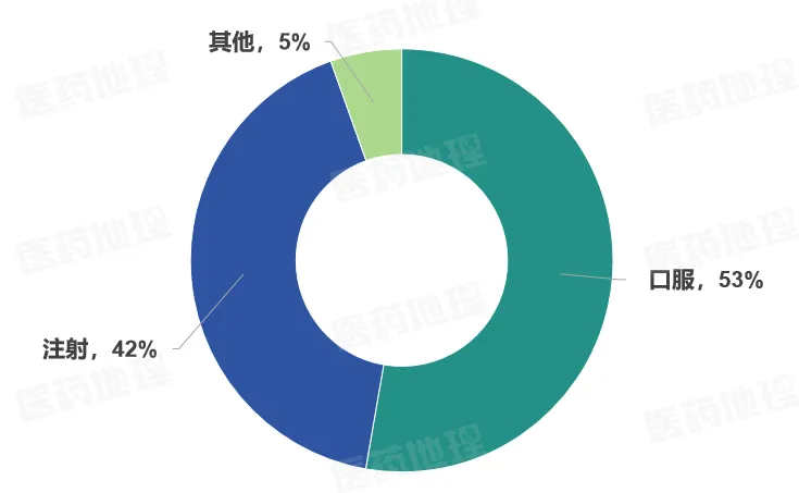 从给药途径上看,55个品种中,口服制剂29个,占比53%;注射制剂23个,占比42%;其余吸入剂2个、贴膏剂1个,合计仅5%。口服与注射两大途径已锁定95%的品种,充分体现临床主流需求与生产端资源配置的一致性。