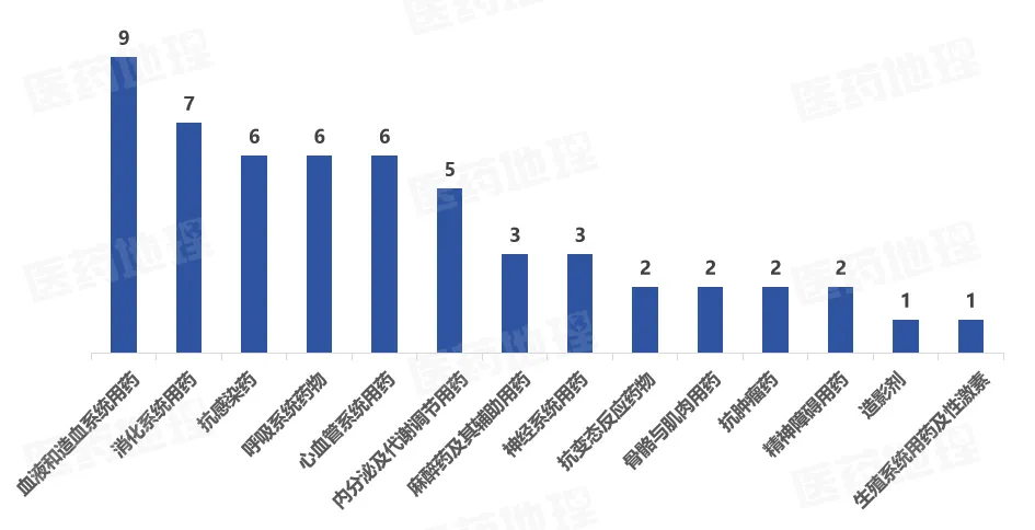 02 治疗领域:血液与造血系统、消化系统药物居前