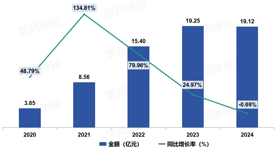 图8:达格列净国内院端放大市场金额(2020-2024)
