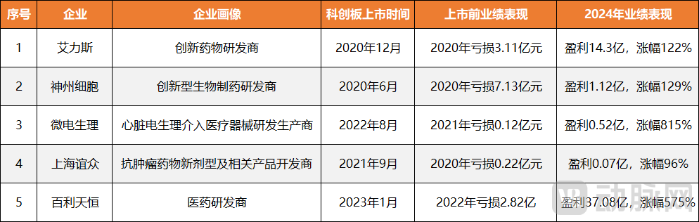 图4.部分科创板上市企业业绩表现(动脉网制图)