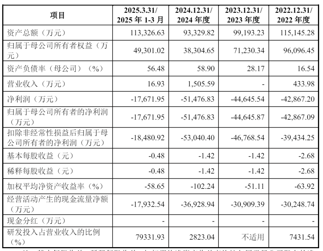 具体来说,2022年至2025年前三个月,泰诺麦博的收入分别为433.98万元、0、1505.59万元、16.93万元,同期净亏损分别为4.29亿元、4.46亿元、5.15亿元、1.77亿元,三年半累计亏15.67亿元。截至报告期期末,公司累计未弥补亏损为10.24亿元。