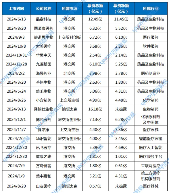 整体而言,2024年医药企业IPO在数量、募资额及上市地点选择等方面的变化,映射出行业发展态势、资本偏好以及全球资本市场环境等多方面因素的交织影响。