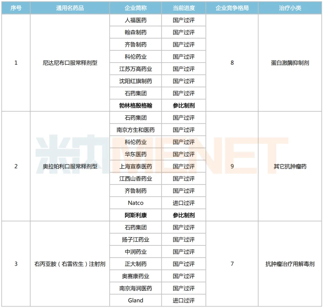 从过评企业上看,本次拟集采的3个抗肿瘤化药石药集团均已过评,科伦药业、齐鲁制药等企业均有2个品种过评。