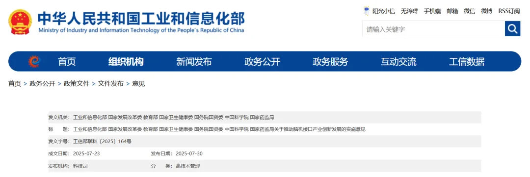 脑机接口通过在脑与机器之间建立信息通道,实现生物智能与机器智能的协同交互,是生命科学和信息科学融合发展的前沿技术。当前,脑机接口创新成果持续涌现,产业加速壮大,正孕育颠覆性突破,已成为科技创新和产业创新深度融合的重要领域。为把握新一轮科技革命和产业变革机遇,推动脑机接口产业高质量发展,加快形成新质生产力,高水平赋能新型工业化,有力支撑现代化产业体系建设,制定本实施意见。