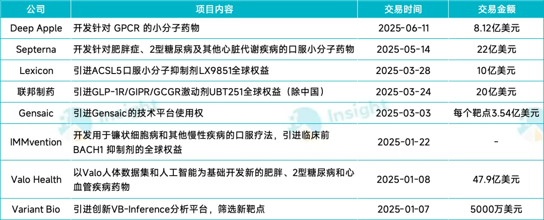 为了进一步推动业绩增长,诺和诺德今年以来已经达成了 8 笔 BD 交易,主要还是加码心血管代谢优势领域。