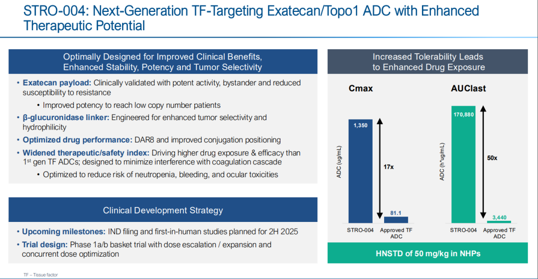 在研发管线方面,STRO-004(靶向组织因子TF的ADC)正在推进,计划于2025年下半年进行首次人体试验,其高达50mg/kg的剂量下临床前安全性数据令人鼓舞。