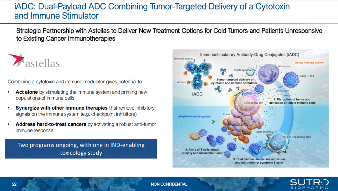 在Sutro与安斯泰来围绕“双载荷免疫刺激型ADC(iADC)”的合作框架下,两个研发项目正稳步推进;其中一项已于近期启动IND所需的毒理学研究,并触发了向