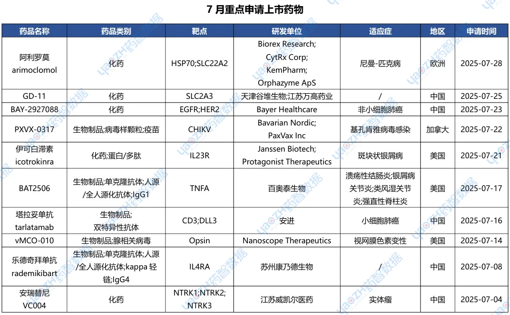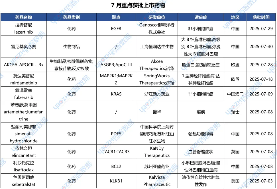 全球新药2025年7月进展概述