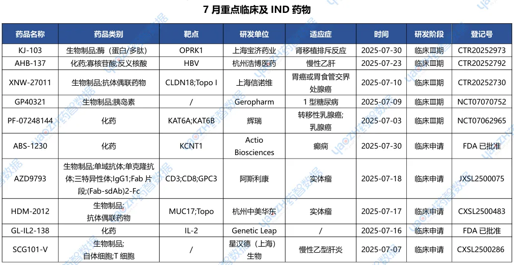 全球新药2025年7月重点项目