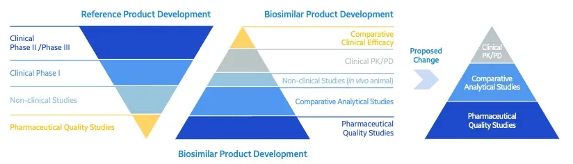 由于生物类似药开发的全球特征,各国监管要求协调一致才能进一步产生实质影响。若目标市场体量庞大却仍要求比较疗效研究,企业将不得不遵循传统研发路径。