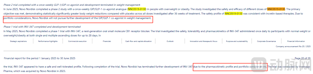诺和诺德在公布 2025 第二季度业绩的同时,更新了其管线信息,有2款减肥药的临床试验被终止。