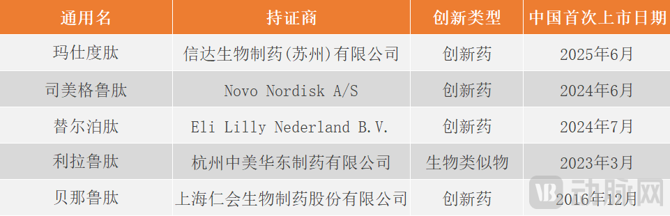 图3. 目前上市的减重适应症GLP-1药物(动脉网制图)