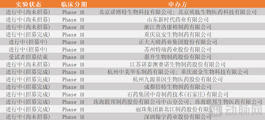 图6. 目前国内市场申报临床的司美格鲁肽仿制药企业(动脉网制图)