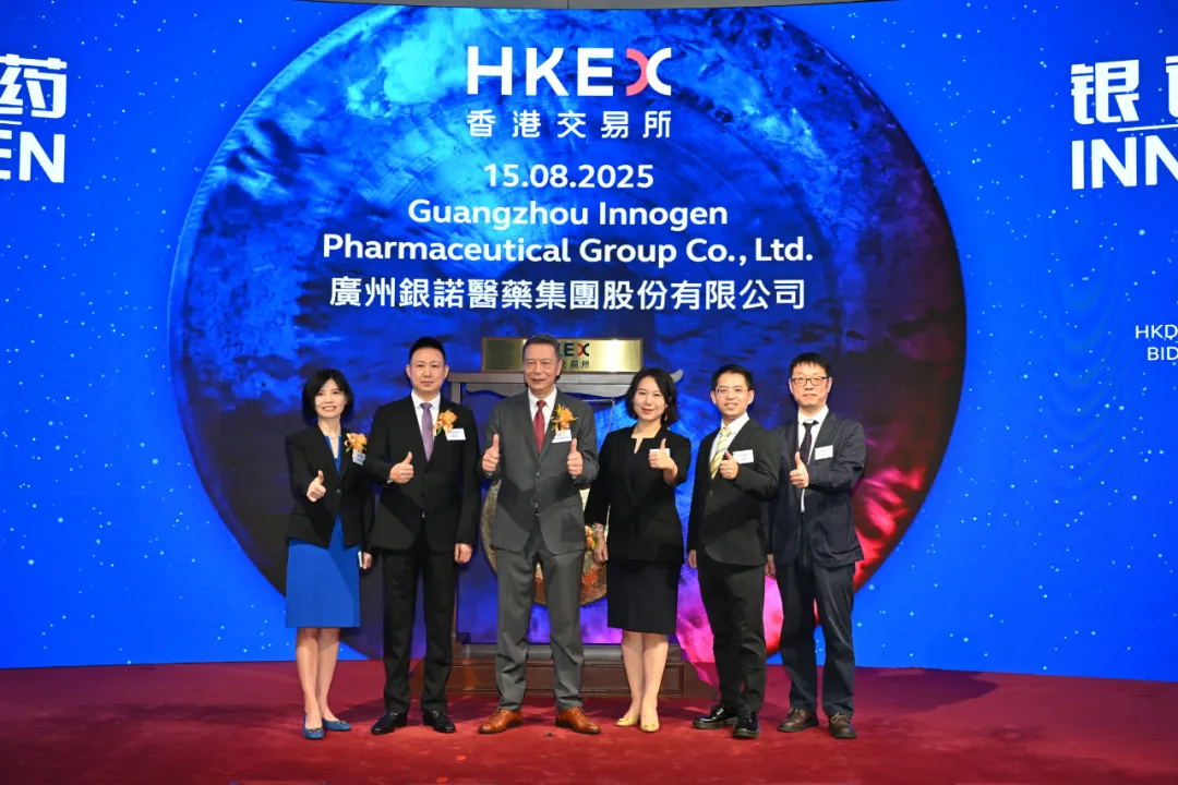 8月15日,中国医药创新促进会(以下称“我会”)会员单位——广州银诺医药集团股份有限公司(以下简称“银诺医药”)正式登陆香港联交所,是8月4日港交所IPO新规后首个在港股进行招股的公司,多方机构及业内人士齐聚现场共同见证上市敲钟仪式。