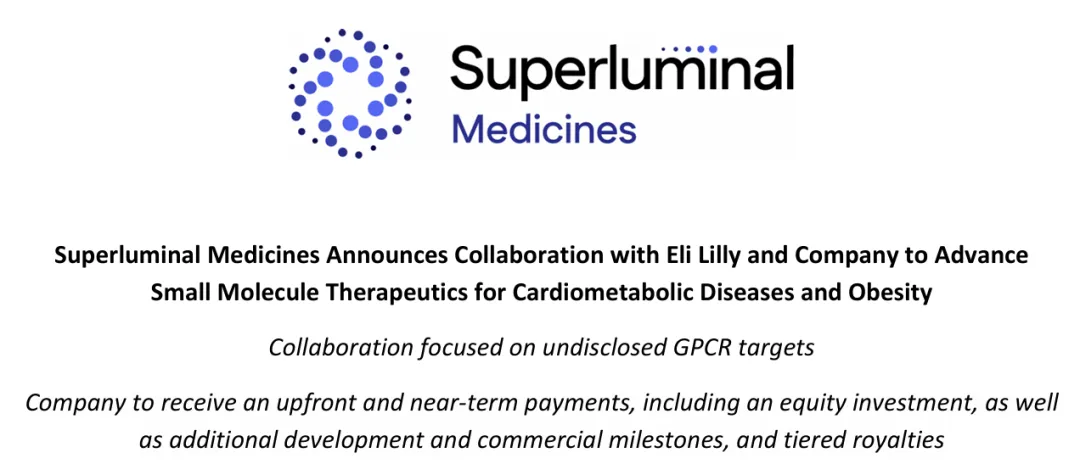 2025年8月14日,Superluminal Medicines宣布,与礼来合作推进针对与心脏代谢疾病和肥胖相关的未公开GPCR靶点的小分子新药。