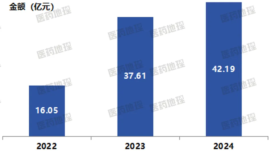 2021年,司美格鲁肽注射液Ozempic(诺和泰)在中国获批2型糖尿病适应症,进入医保谈判目录,奠定了第一波放量基础。PDB药物综合数据库显示,过去三年里,Ozempic(诺和泰)国内院端放大市场金额持续上升,从2022年16.05亿元到2024年的42.19亿元,市场需求逐渐扩大。