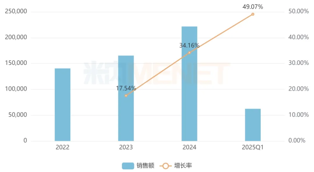 达攸同(贝伐珠单抗)是信达生物获批的首款生物类似药,目前已成长为公司第二大支柱产品。米内网数据显示,达攸同近年来在中国三大终端六大市场的销售额持续增长,且增速呈逐年递增态势,2024年其销售额突破20亿元,2025年一季度超过6亿元。
