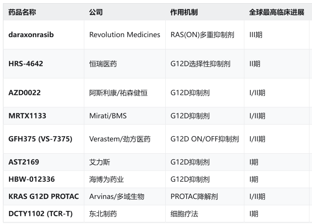 G12D的抑制剂最快的是恒瑞的HRS-4642,其余管线均在I/II期或I期,未来鹿死谁手,尚未可知。