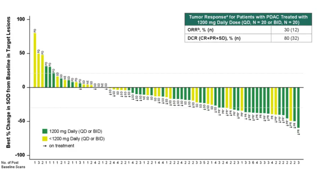值得注意的是,在二线及以上的胰腺导管腺癌患者缺乏有效治疗手段背景下,GFH375/VS-7375取得这样的疗效数据(该药患者基线较前述两款药物试验更严重),显然是存在BIC潜力的。