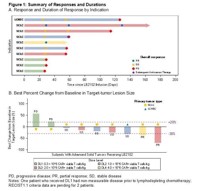截至2025年3月5日,该I期研究共纳入了10例小细胞肺癌(SCLC)和2例大细胞神经内分泌癌(LCNEC)患者。在可评估疗效的10例患者中,随访120.5天时,ORR为20%,DCR为70%。