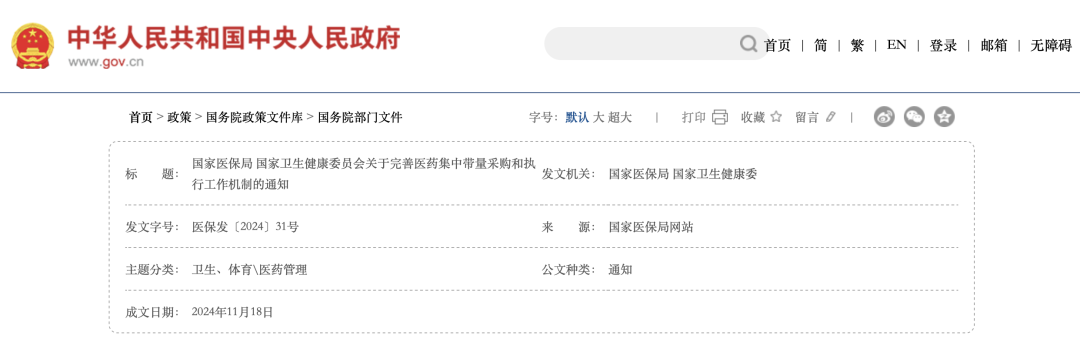 直接结算方面,2024年12月14日,国家医保局在全国医疗保障工作会议上提出,“要积极推进医保与医药企业直接结算,2025年全国基本实现集采药品耗材、国谈药的直接结算,2026年全国全面实现集采药品耗材、国谈药的直接结算”。