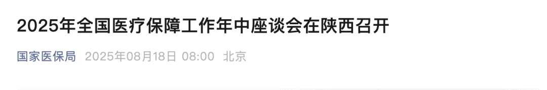2025年8月15日,全国医疗保障工作年中座谈会在陕西西安召开,会议提出探索开展集采协议期满后全国统一接续采购,降低企业逐省投标成本。积极推进医保基金对医药集采企业直接结算。