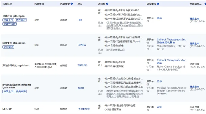 诺华肾病管线全景