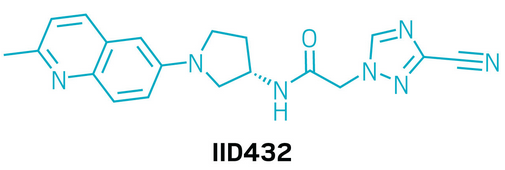 IID432是一款在研小分子,用于治疗美洲锥虫病。美洲锥虫病长期困扰全球数百万患者,但现有疗法往往疗程较长,疗效不稳定且安全性不足。为寻找更理想的方案,研究人员在诺华化合物库中通过表型筛选,发现了一类对锥虫寄生虫具有快速杀灭作用的氰基三唑化合物。经过进一步优化,团队为美洲锥虫病定制靶向药物的核心结构,不仅提升了活性,还降低了对大脑的影响,显著提高了疗效。研究显示,该类化合物可选择性抑制克氏锥虫的拓扑异构酶II,从而阻断DNA复制。在这一系列化合物中,IID432表现尤为突出。它在体外实验中展现出极强活性(EC50仅8 nM),并能在停药后实现无复发的寄生虫清除。在小鼠模型中,单次口服25 mg/kg剂量即可实现治愈,即便在免疫抑制状态下仍保持疗效。此亮眼结果显示出其作为根治疗法的潜力。目前,IID432已顺利完成大鼠和猴子安全性研究,即将进入临床1期试验阶段。