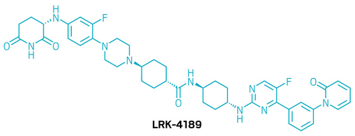 LRK-4189是一款潜在”first-in-class”的口服小分子降解剂,专门靶向脂质激酶PIP4K2C,用于治疗微卫星稳定型结直肠癌及其他实体瘤。癌细胞在压力环境下往往通过多种适应机制来逃避细胞死亡,而PIP4K2C已被证实与结直肠癌、乳腺癌等多种肿瘤的不良预后密切相关。肿瘤细胞通过利用PIP4K2C提升生存能力,避免免疫监视并耐受压力。LRK-4189能够选择性降解PIP4K2C,在人体原代细胞中展现出亚纳摩尔级的高效活性。在体内实验中,LRK-4189表现出剂量依赖性的药代动力学和药效学特征,作为单药即可在多种结直肠癌模型中产生明显疗效,并与一线化疗药物展现出协同作用。在来源于患者的肿瘤类器官模型中,约50%的样本对LRK-4189有应答,且微卫星稳定型结直肠癌的应答率优于对照获批药物(35%)。目前,LRK-4189已完成IND申请所需的前期研究,计划于2025年第四季度启动1期临床试验。