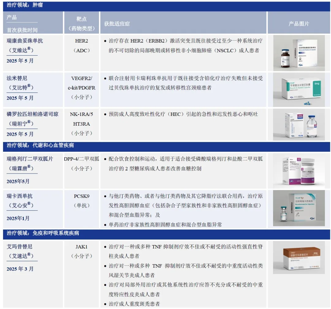 表1. 2025年上半年恒瑞医药新获批上市的6款1类创新药