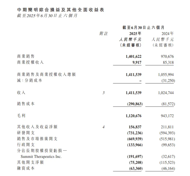 8月26日,康方生物发布2025年中期业绩公告:公司上半年总收入达14.12亿元,同比增长37.75%,商业销售收入达14.02亿元,同比49.20%,占总收入99.3%。营收增长主要得益于两款核心产品卡度尼利与依沃西在去年被纳入国家医保目录适应症后销售显著增长,以及新获批的一线适应症的贡献。报告期内,公司研发投入约7.31亿元,公司现金及其他短期金融资产合计约为71.38亿元。