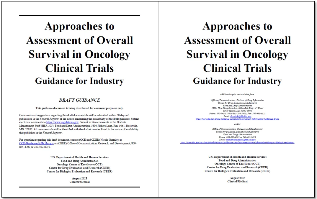 FDA近日发布的指南草案Approaches to Assessment of Overall Survival in Oncology Clinical Trials,强制要求即使总生存期(OS)不作为主要终点,也必须在临床试验中预先设定、系统收集OS数据,作为疗效和安全性评价的核心依据,并配套了严格的统计学和试验设计新规。