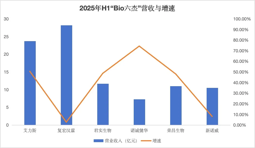 以此为界,“500亿线”被照亮为分水岭,估值的锚从“讲故事”切换到“凭业绩”。E药经理人据此将这条线附近、正回答同样考题的六家中国Biotech——艾力斯、荣昌生物、复宏汉霖、诺诚健华、君实生物、新诺威——合称“Bio六杰”。