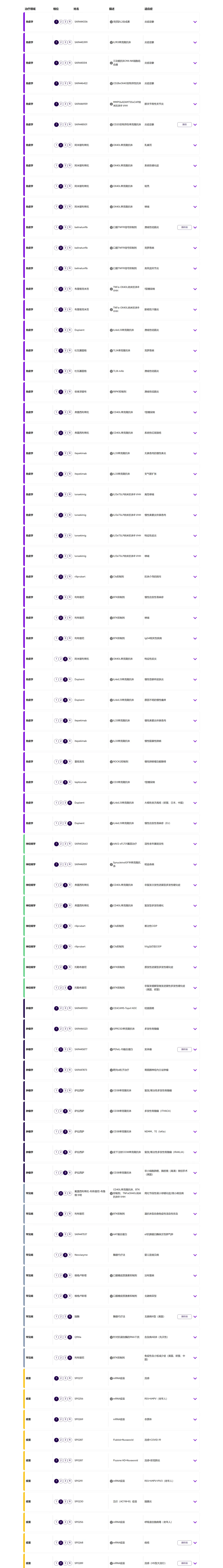 拉远看,赛诺菲目前共有82个临床阶段项目,其中约 30 个已进入 III 期或注册阶段。庞大的临床矩阵叠加可观的后期梯队,意味着2025年的交易更多是在“加密”既有领地、植入精准选项,而非亡羊补牢。