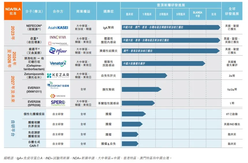 在商业化产品加速增长的同时,云顶新耀的在研产品也取得了不少进展。