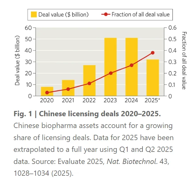 Nature最近发布的一篇研究报告显示,在2020至2025年期间,11家大型制药公司(艾伯维、阿斯利康、BMS、礼来、GSK、强生、默沙东、诺华、辉瑞、罗氏和赛诺菲)共承诺在亚洲投入超过1500亿美元用于授权交易和研发合作,其中包括超170亿美元的预付款与股权资金。