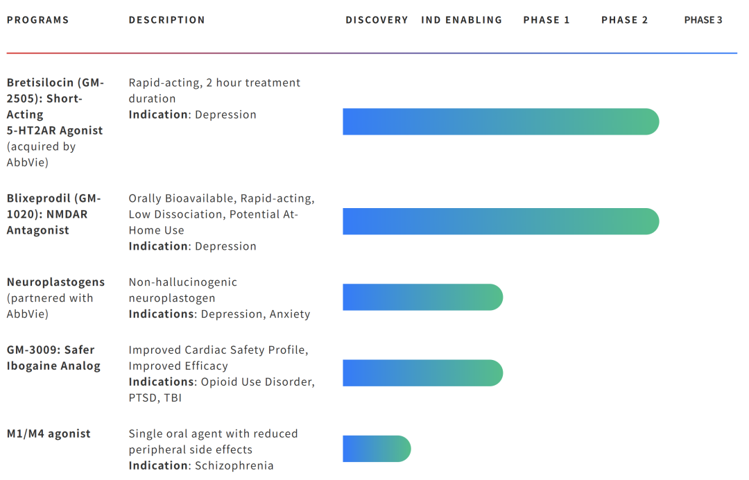 图16. Gilgamesh Pharmaceuticals的研发管线
