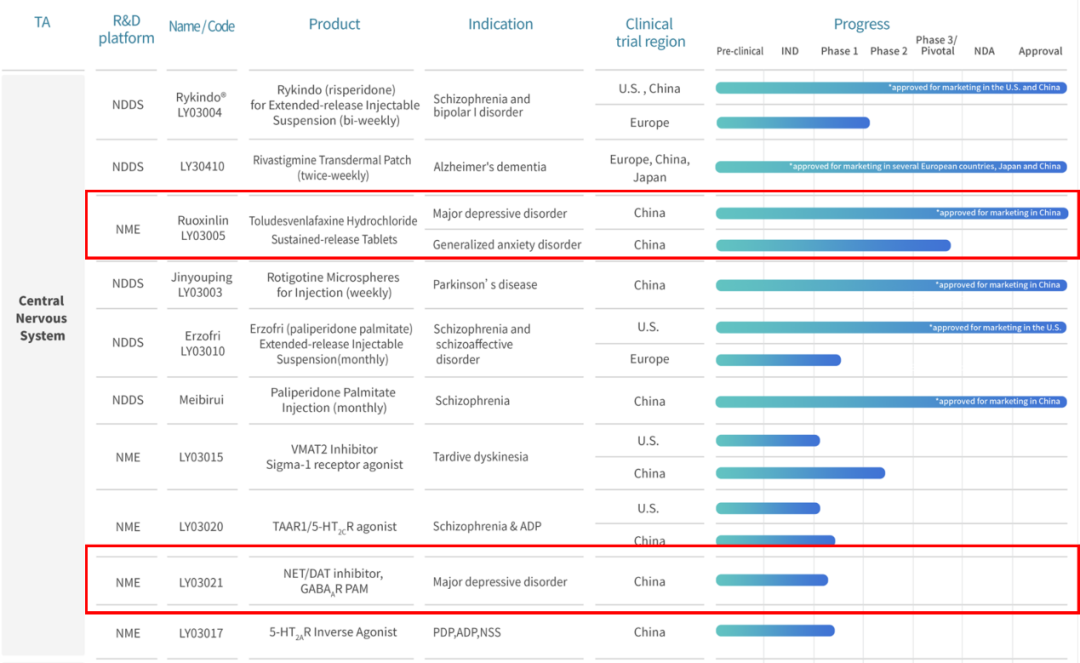 绿叶制药集团是一家致力于创新药物的研发、生产和销售的国际化制药公司。绿叶制药在抗抑郁症药物研发方面取得了显著进展,其核心产品若欣林®(盐酸托鲁地文拉法辛缓释片)是中国首个自主研发并拥有自主知识产权的抗抑郁1类创新药,于2022年12月获批上市(图19)。