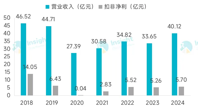 时间回到多年以前,信立泰凭借首仿的硫酸氢氯吡格雷(泰嘉)进入躺赢时代。2018 年信立泰迎来高光时刻,泰嘉在国家「4+7 带量采购」成功中标,助力公司业绩飙升,全年营业收入 46.52 亿元,同比增长 11.99%,扣非净利 14.05 亿元,创下历史新高。