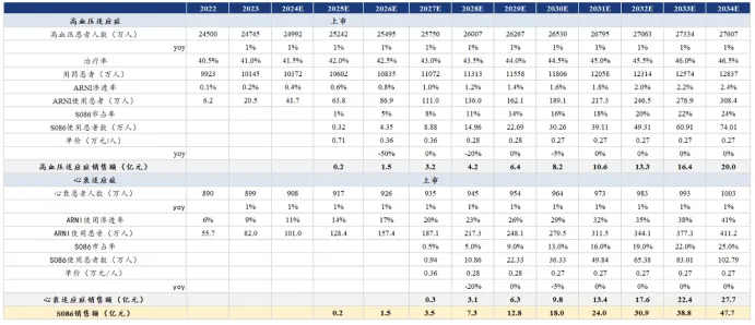 值得一提的是,S086 直接对标全球首款 ARNI 类药物诺欣妥,作用机制相似,后者 24 年全球销售额为 78.22 亿美元(+29.61%)。根据华创证券测算,2034 年 S086 的销售额有望达 47.7 亿元。