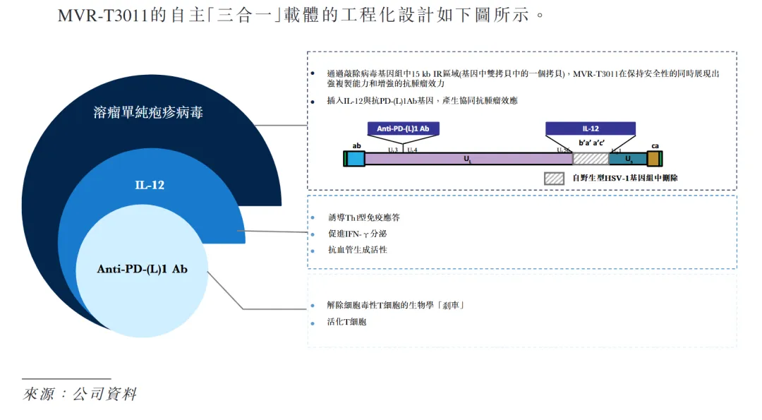 溶瘤病毒Biotech亦诺微的思路也非常清奇,MVR-T3011是亦诺微在1型单纯疱疹病毒(HSV-1) 的基础上进行基因改造而成的溶瘤病毒,特殊的工程化改造确保了病毒能选择性地在肿瘤细胞内大量复制,最终导致肿瘤细胞裂解死亡。