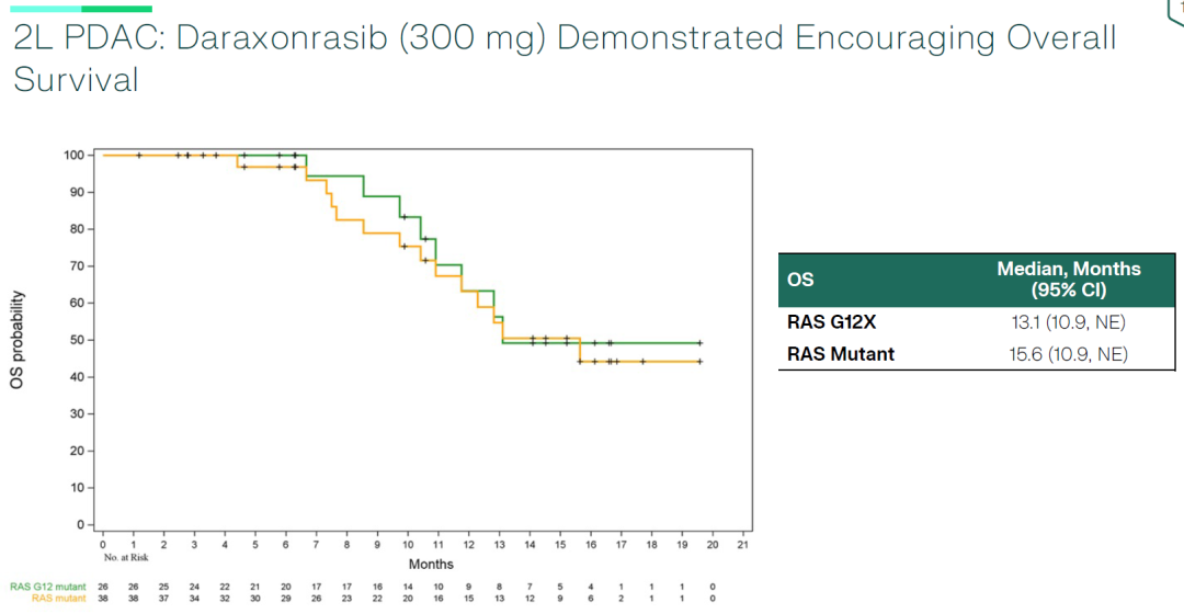 Daraxonrasib单药二线治疗胰腺癌RAS G12X突变、任何RAS突变的ORR分别为35%、29%,DCR分别为92%、95%。