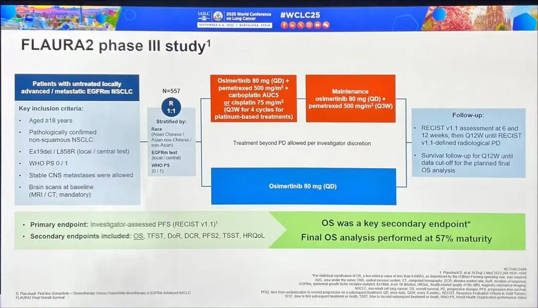 1.III期FLAURA2研究:奥希替尼靶化联合一线OS重磅面世,获益显著!