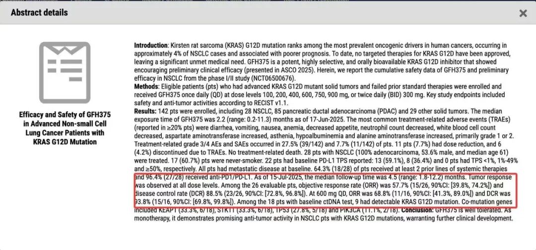 13、GFH375治疗KAS G12D肺癌,有效率57.7%。