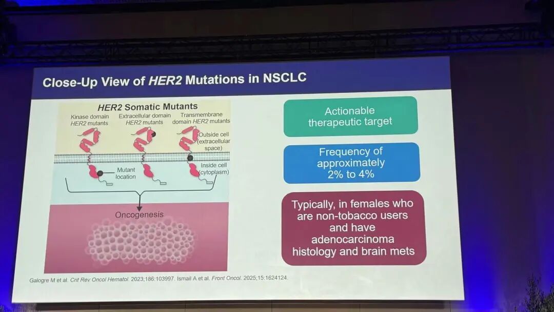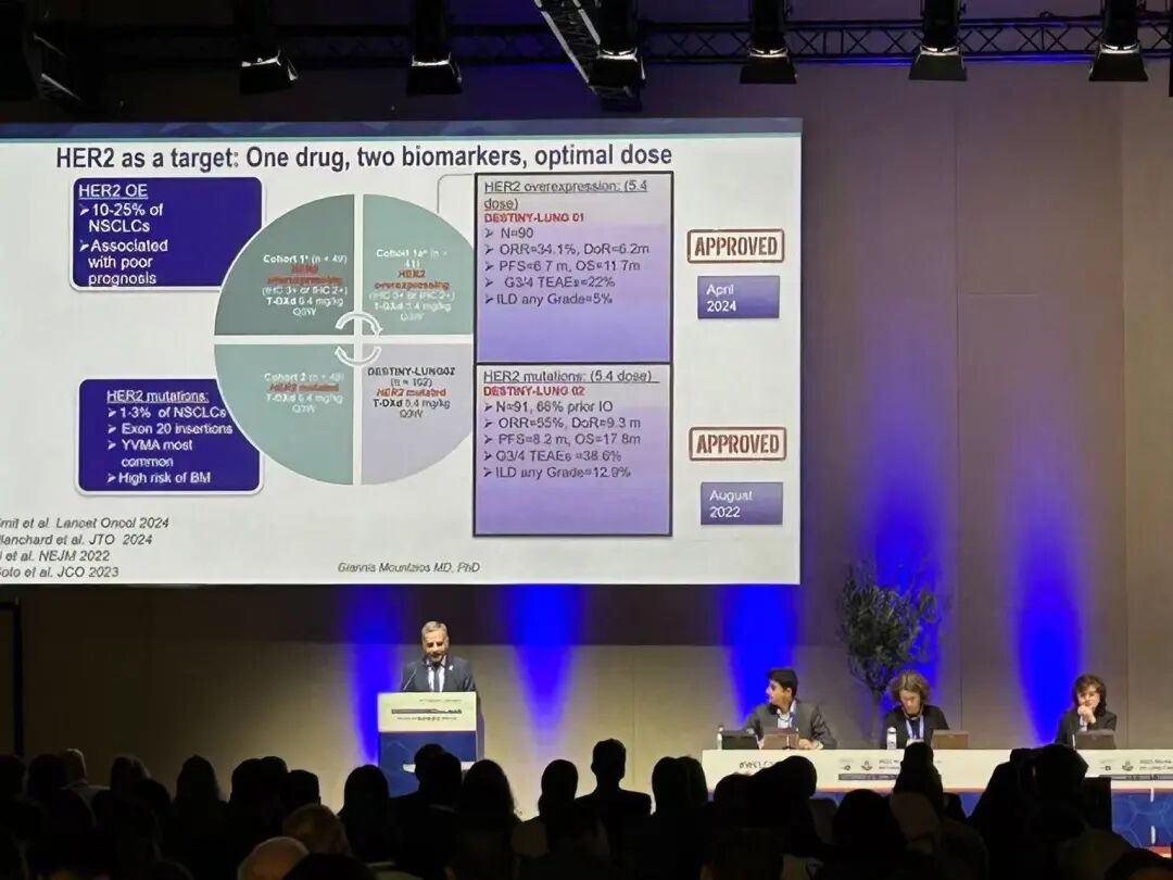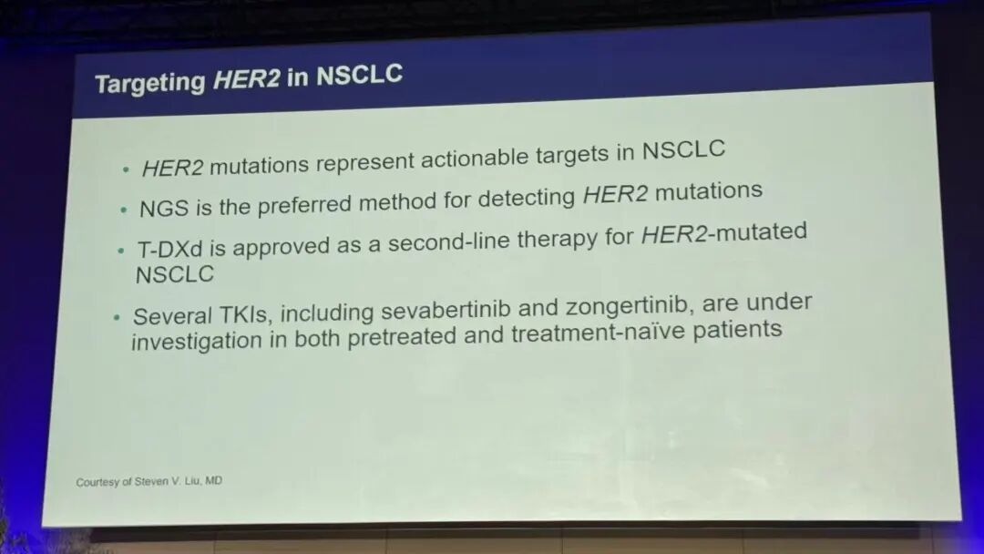 HER2突变在NSCLC的发生率为2-4%,T-DM1被批注作为二线治疗,其他药物如savebertinib(BAY 2927088)及zongertinib正在探索中。此次一款HER2 ADC药物TQB2102疗效公布,结果显示,在37里HER2突变患者中ORR为61%,在11例HER2扩增或蛋白过表达的患者中,有效率为44.4%,在11例同时具有HER2异常及EGFR突变的患者中,ORR为100%。