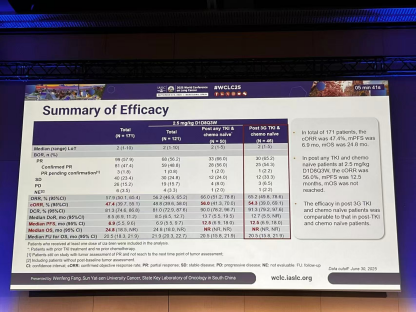 总体疗效44%,处治疗效89%,对于G2032R难治耐药突变疗效54%,为ROS1提供新一代治疗药物。